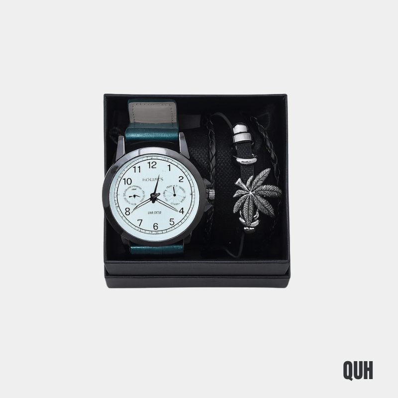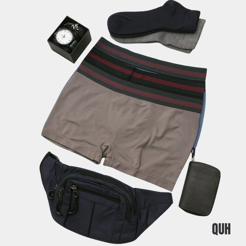 Este combo incluye 6 boxers stretch, 6 medias de algodón, billetera, canguro, reloj casual y pulsera.