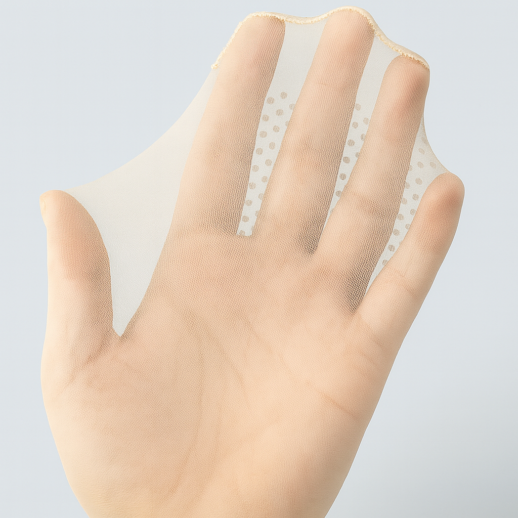Borde con textura en malla que no se baja ni aprieta. La punta está tejida a mano para ajustarse perfectamente a la forma del pie.
